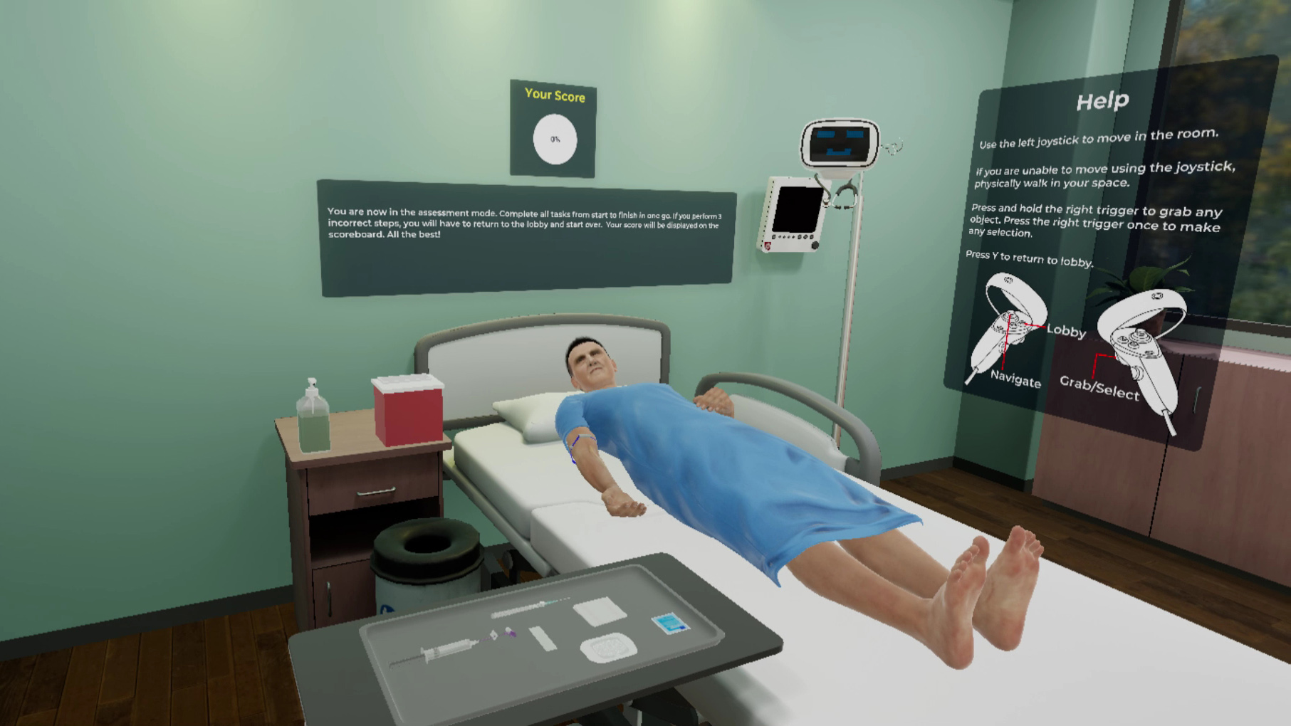Developed a comprehensive VR training simulation with integrated AR features for IV cannula insertion and removal. Created following Infusion Nurses Society guidelines, this immersive module provides realistic hands-on training for healthcare professionals in proper IV therapy techniques.